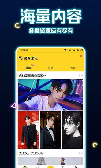 魔秀来电app有不同的明星题材,不同种类的壁纸和视频内容供你选择。