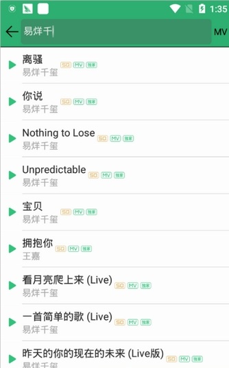 4、搜索出来的歌曲直接就可以在线播放