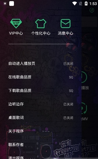 2、点左上角的设置可以调节软件的背景,下载品质等内容