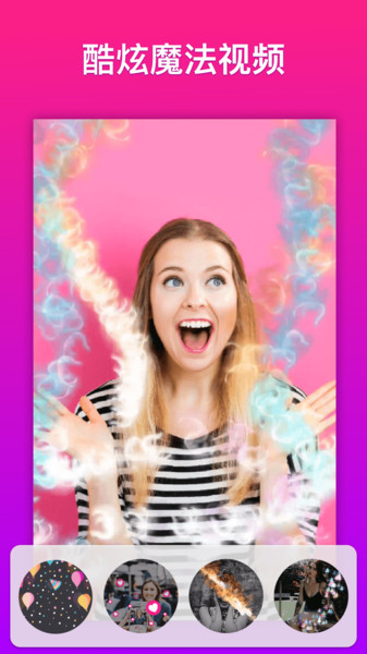 用指尖轻松触摸视频,想要的效果轻松搞定.创意酷炫魔法特效,随意叠加.用特效玩转时尚.轻轻滑动,小心小星星带你飞~