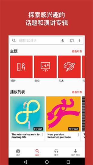 - 可浏览整个TED演讲视频库,包括100多种语言。