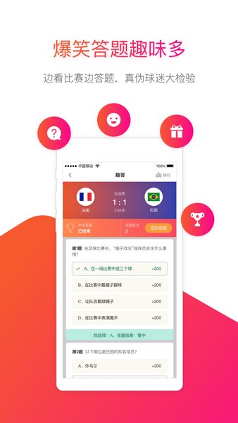 参与趣味竞猜争上排行榜,边看比赛边答题,你是真球迷还是伪球迷试试便知。