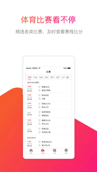 精选各类体育比赛,及时查看赛程比分,让喜爱体育的你看个不停。