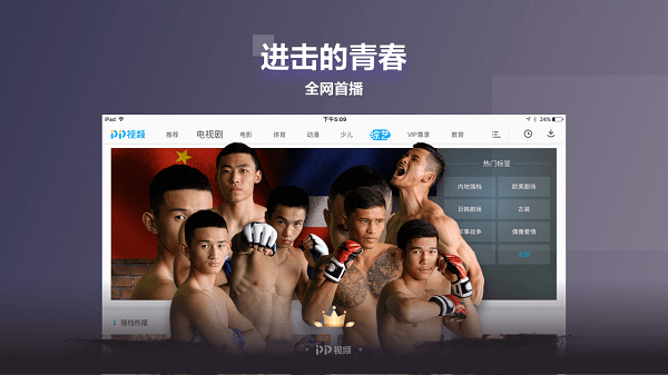 在线观看“高清电影、电视剧、综艺、游戏竞技、财经、热点头条新闻、体育赛事英超直播、cba直播,日韩动画等各类节目。蓝光高清资源,快速搜索,多屏互动,精彩自己掌控。原pptv的高清强化版,更多以精彩内容快来搜索吧!