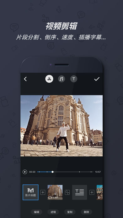 视频大师是由秒拍和小咖秀推出的专业视频编辑器! 通过轻松导入相册视频和照片,使用编辑工具,你可以轻松地对视频进行剪辑.添加字幕,简单快速把照片制作视频或者对视频进行后期制作。 拥有直观的视频编辑工具,你所需要的仅仅是点击并添加更改效果。