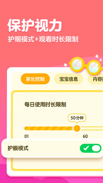 --产品开启护眼模式,保护孩子视力;家长灵活设置每日使用时长,科学管控孩子娱乐时间。