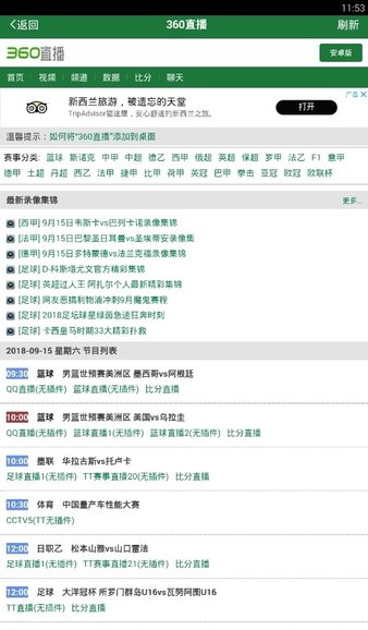 2.体育比赛立即了解:360直播对比赛开展提早通告报导;