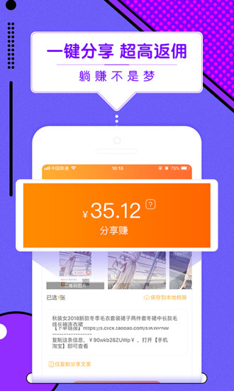 5、分享赚钱,动动小手,将优惠券分享给好友,好友通过你的链接购物,你还可以拿分享返利哦。