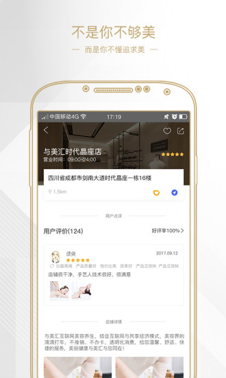 2、清清楚楚消费,明明白白花钱。与美汇的商业逻辑就是让消费者在接受服务的过程中,把自己放在首位,通过购买心意的适配项目产品,再选择自己心仪的技师和体验店,通过一键导航到店接受服务,整个服务过程中,所有技师与体验店不允许做任何销售,消费者可以放松下来享受技师与高端仪器带来的高体验;