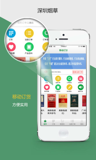深圳烟草专为零售户打造的移动订购卷烟平台,具有实时在线订购卷烟、查询历史订单详情、查询帐户余额、查看在销卷烟的详细数据、查看烟草通知公告、实时提交投诉建议等常用功能。