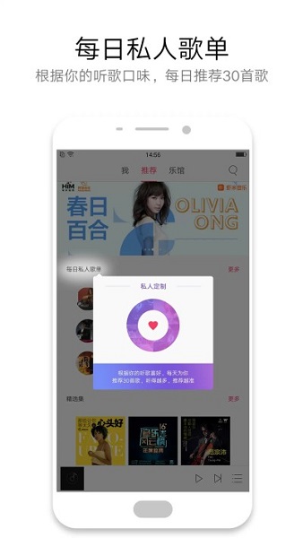 - 每日私人歌单,根据你的听歌口味,每日推荐30首歌