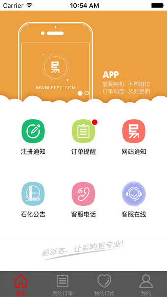 易派客app是由中石化推出的电子商务采购服务手机软件,用户可以在这里查看最新的公告信息,可以查看最新的订单提醒,支持查看详细的采购订单情况,包括待审批、代付款、待收货等详细信息,还有详细的招标公告、资格预审等。
