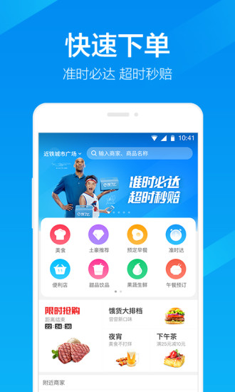 1.不止送外卖上饿了么下载手机版就能马上在线订购美食、甜品、水果、鲜花、蛋糕、生鲜、超市百货,准时送达!