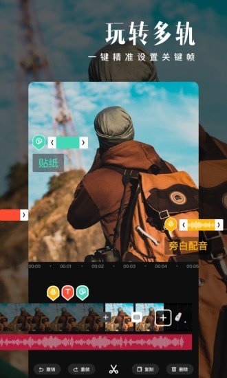 非常实用的免费视频剪辑编辑软件,用户可以随时随地进行视频编辑,如剪切,添加视频,背景音乐,字幕,滤镜美化,配音等等,这里都可以,趣味个性化功能自定义设置,