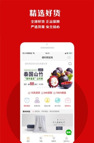 便利预定网是手机线上综合购物应用软件,软件内商品种类齐全,用户可以在软件内随意进行挑选,基本可以满足用户的日常购物需求,除此以外软件还对用户生活中的衣食住行各个方面都有服务,用户可以在线上购买零食、饮品、蔬菜、水果、粮油等商品,即卖即送,急速送达,货到付款,让用户可以放心在软件内进行购买,非常的方便可靠。