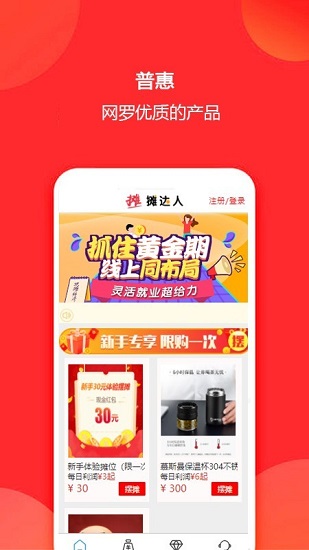 摊达人软件一款可以让你体验到摆摊的app,同时你也可以作为普通购买者在这里挑选所喜欢的商品。简单的页面功能分布给带来了一个更为优质的体验,更多功能详情不妨就到极光站下载体验。