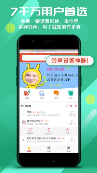 所有铃声都可以一键轻松设置为彩铃、来电、短信、闹铃,app拥有400万彩铃曲库,每日更新1000+热门彩铃,网罗时下热门中文流行、DJ舞曲、幽默搞笑等各种分类彩铃。