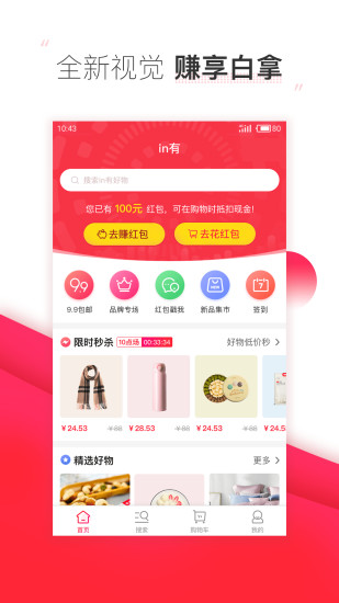 in有鼓励互动式分享,自用省钱,分享赚钱,新人首单与一键分享可获1-88元不等红包奖励。