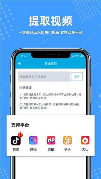 1、视频提取:一键提取无水印热门短视频,快速,高效;