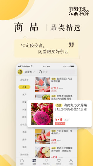 有好东西app是一款全新推出的美食电商类软件,这里为您引领各大潮流的商品,主打家庭品质生活的专业甄选服务,千万好东西,帮您一键搞定哟,随时寻味路上,总有你不知道的故事,新品发布,上新计划,一目了然哦,随时互动,发布现场有问必答。