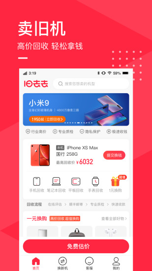 旧去去app手机版是一款把旧的二手手机等设备高价卖掉,之后换来钱直接在新品上少花钱的客户端,平台特色是双向包邮免费邮寄,有专业彻底专业清除数据,安全质检让你二手设备放心卖,在这买来的新设备放心,赶快来体验吧。