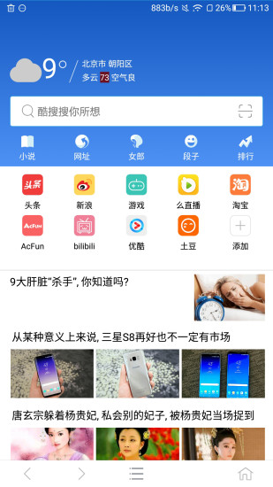 酷搜浏览器是手机端使用的浏览器app,本款软件支持多种功能,用户可以直接看头条、新浪微博以及玩游戏,不需要另外下载软件就可以体验,不仅带来方便,还节省了许多手机空间,极光下载站提供酷搜浏览器app下载。