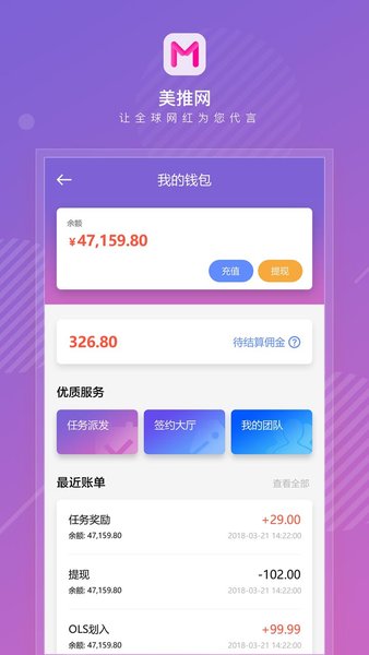美推网app网红垂直化一站式综合服务平台客户端。致力于网红经济+社交电商新服务理念,旨让全球网红为您代言!一个0投资0门槛一个人人可当经纪人,可当网红的创业平台,诚邀你的加入!