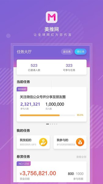 1.强大的全民参与任务模块,品牌推广、商务宣传。