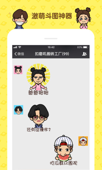 赶快制作属于自己的卡通表情,定期更新的搞怪、贱萌、吐槽、可爱表情包库,你想要的表达应有尽有!微博、微信、QQ…任何时候想发就发~