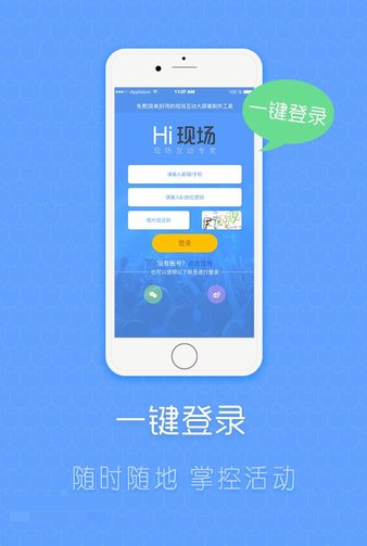 针对现场互动营销的大屏幕制作工具,用户可以通过大屏幕同步展示观众的互动消息,借助微信平台,实现文字、图片、投票、抽奖、粉丝签到、嘉宾展示同步上墙等多种功能。参与者通过摇动手机可参与互动游戏,并在大屏幕上实时显示游戏进程与结果;主办方可对活动现场发布的不当内容进行屏蔽或过滤,还可借助Hi现场记录活动数据、统计活动效果。