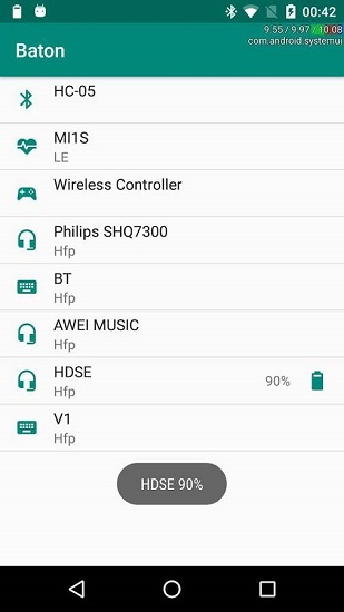 --这款应用将试着显示蓝牙设备的电量。蓝牙设备必须满足免手持规范(接听、拒绝来电)或者gatt规范(一般为4.0以上的低电量设备)。