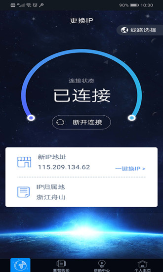 可以一键更换IP,清楚显示当前IP归属地信息;