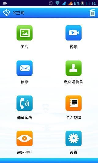 x空间是一款免费的保护您手机隐私的安全软件。如果您手机里面有一些隐私的照片、视频、联系人、短消息等;那么想要保护这些隐私数据不被他人发现,有了“x空间”它可以帮助您隐藏掉这些数据;并可在x空间里继续查看或使用这些数据,它还可以帮助您拦截隐私的电话和短信。