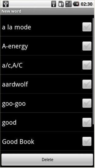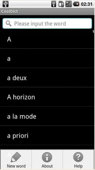 英汉、汉英双向词典。英汉词典内容包括词条的词性以及详尽的解释、音标(dj、kk等符合国际标准的音标)、反义词、近义词、不规则变换、复数、过去式、过去分词、比较级、*等,能满足不同用户学习英语的需要;汉英词典中,对于汉语词汇也有比较详尽的英语解释,可以起到查询词汇的作用。