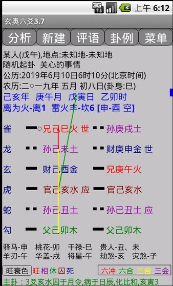 4.软件自身具有一定的智能分析功能,对用神、动爻、世爻在卦像中的态势、以及三者的关系给出了参考