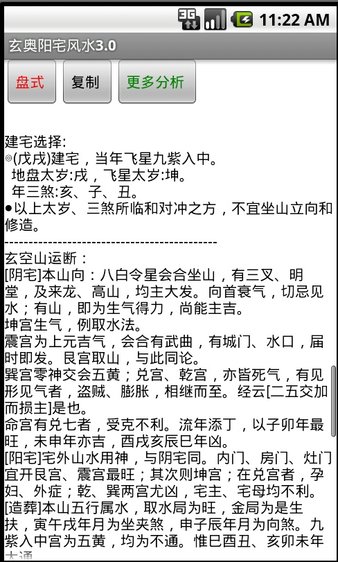 3.可以排出完整的玄空飞星盘,显示出运星、山星、向星,清晰的二十四山、阴阳标示、座向指示线,一目了然