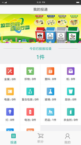 【积分商城】使用投递积分换取各类生活用品、学习工具、购物卡等。
