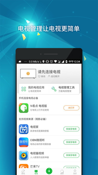 看点遥控器是一款专为电视设计的手机遥控软件。在这款看点遥控器app中用户可以不用遥控控制,直接用手机app完成远距离遥控。本软件还可以深度管理电视,调整并优化电视状态,起立废弃文件以及网速检测等多项功能。