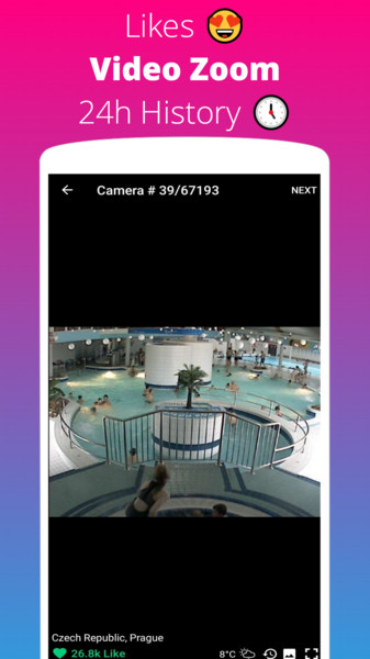 实时摄像头是一款有趣的实时视频应用。在这款实时摄像头app中,用户可以查询全球上千个公共摄像机的实时视频,可以通过摄像头来浏览美景,让您足不出户就可以体验到观察的乐趣。