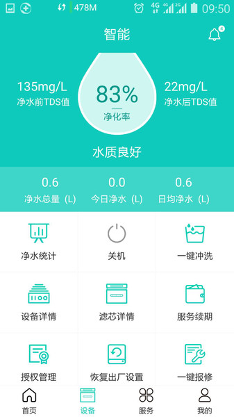 实时了解水质状况(进出水TDS值、净化率);