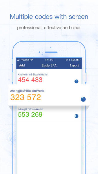 eagle 2fa安卓版有着多种验证信息的安全管理系统,更加便利于用户的轻松管理,同时支持信息的简单到处功能,像备份恢复都可以批量去操作,该软件最注重的就是信息账户的密码,带给用户安全的使用环境。