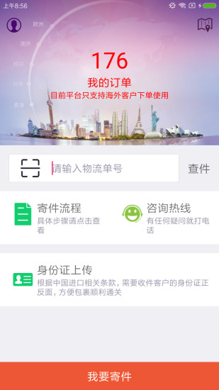我要查件:快件跟踪查询,可手动输入或直接扫描运单条码查询。