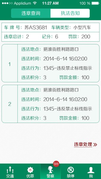 根据车辆行驶情况,实时记录违规数据方便 车主及时了解。
