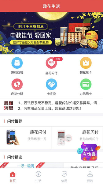 趣花生活app是一款功能性十足的网购消费服务平台,我们为你提供在线网购消费,同时还有代付的功能,为你的小额支付买单,分期还款功能等,还有更多惊喜优惠活动,喜欢购物的你一定不要错过哟!