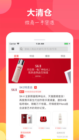 1、大清仓,微商一手货源,在这里给予你最有质量保证的掌上购物之旅。