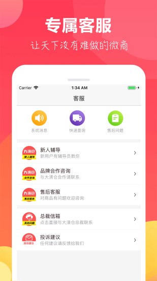 1.轻松经营:大清仓所有商品不需要打款,不需要压货,店主出售商品后即可获得利润,专属客服提供售前售中售后服务协助解决各种问题。