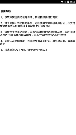 3.支持nfc读取身份证信息,只需要用有nfc功能的手机贴近身份证,就可以读取到身份证信息