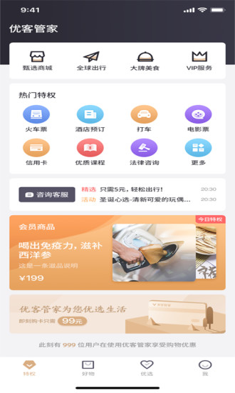 优客管家是一款全新的智能管家app,涉及范围广,包含到衣食住行等各个方面,为你的生活全新不一样的智能体验,还有更多好物推荐给你看,更有法律咨询功能告诉你,专家在线替你解决问题,更多精彩就在极光下载站!