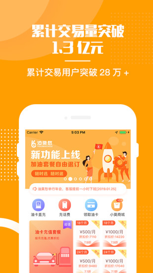 油莫愁app目前专注于为广大的车主提供线上的加油支付,帮助广大车主加油省钱又省时。后期将携手汽车后市场商家,为广大车主打造一个品质的互联网车市场,可以在油莫愁APP享受一站式的优质服务。