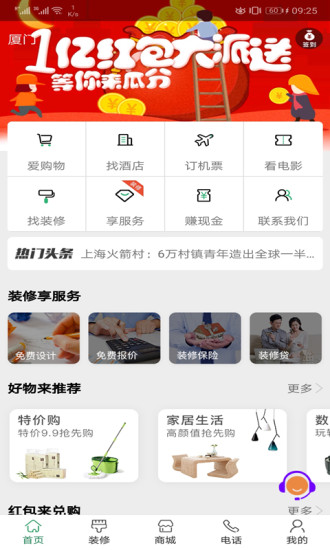 -除了装修还有很多的生活服务,比如预订国内酒店机票,进行生活家居购物等等